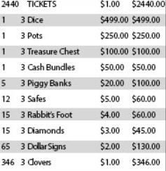 2440 Tickets – $2440 Total Payout – $1640 Ideal Profit – $800 Payout% – 67.8% Profit% – 32.2%