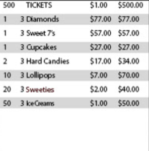 500 Tickets – $500 Total Payout – $355 Ideal Profit – $145 Payout% – 71% Profit% – 29%